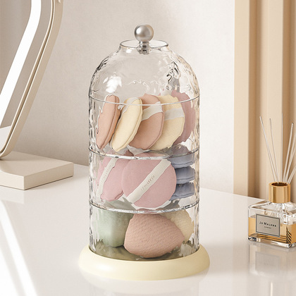 旋转化妆品收纳盒高级感粉扑首饰化妆盒桌面护肤品透明归纳防尘架