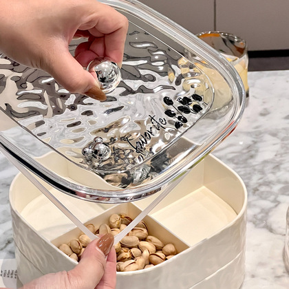 网红高颜值奶油风干果收纳盒家用客厅密封带盖零食坚果水果盘