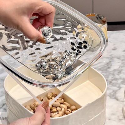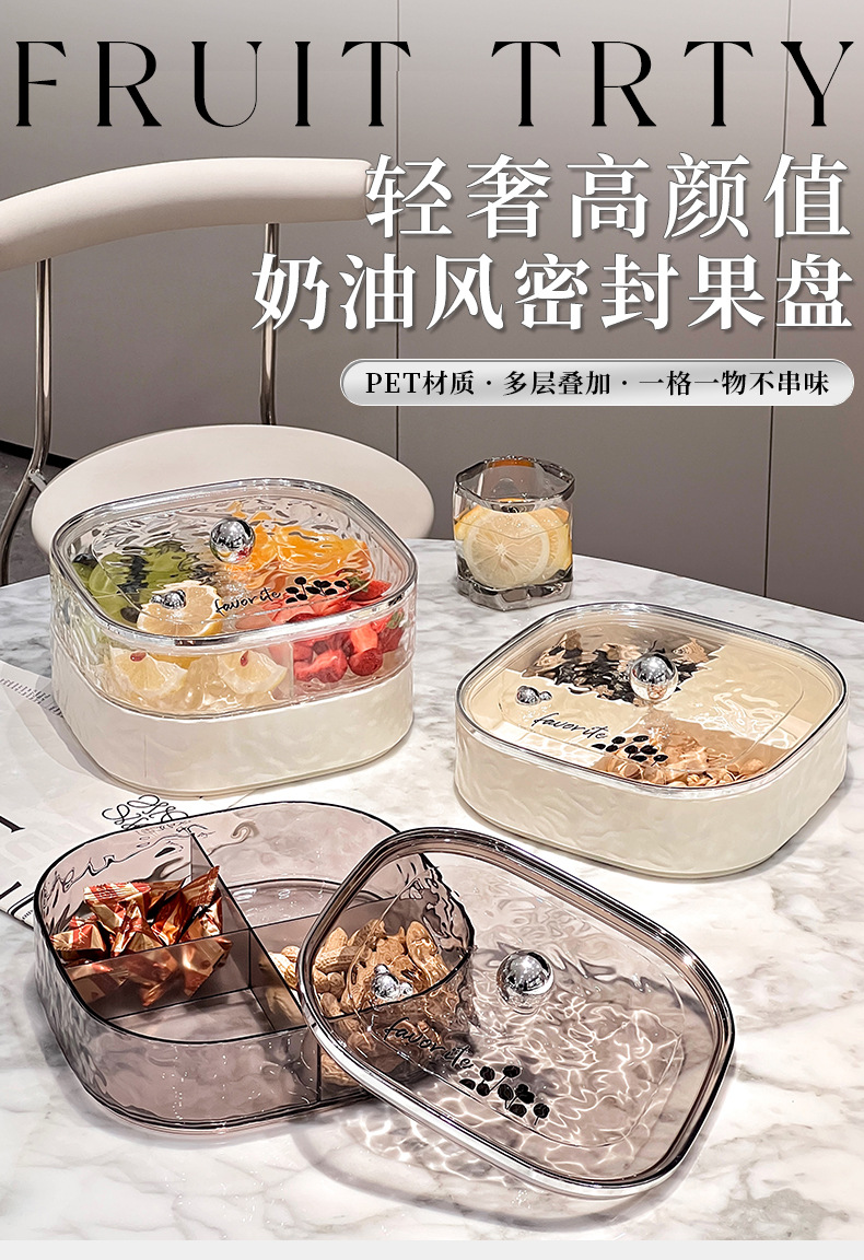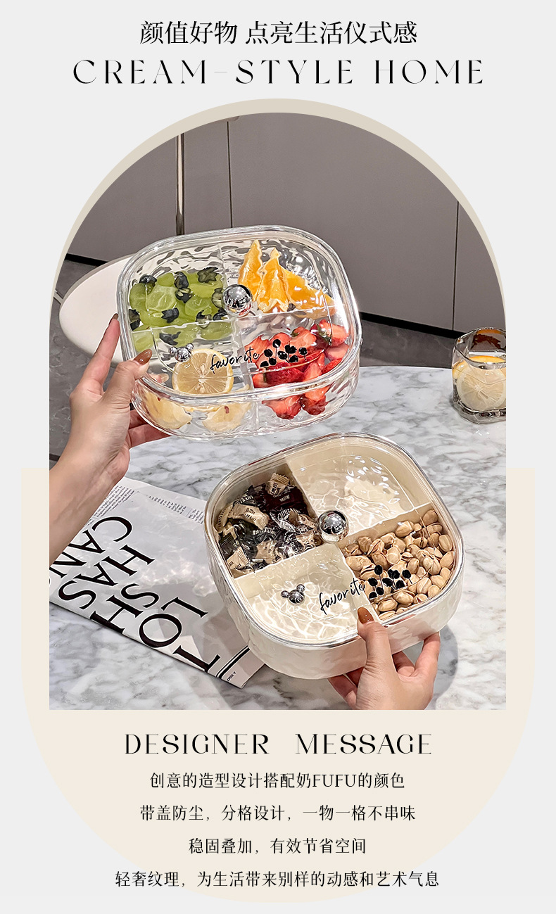 »网红高颜值奶油风干果收纳盒家用客厅密封带盖零食坚果水果盘
