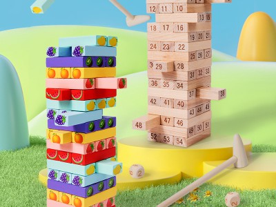 益智原木色数字叠叠乐 抽积木彩色水果叠叠乐幼儿园积木