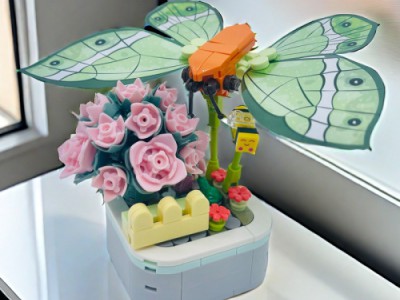 »花儿蝴蝶蜻蜓盆栽花束造型益智拼装积木创意摆件